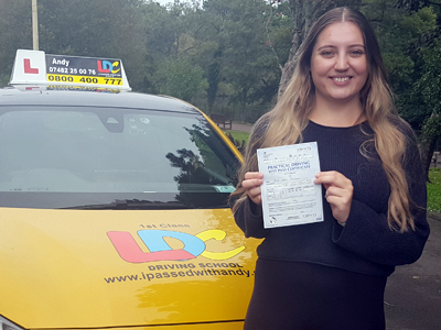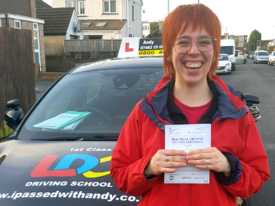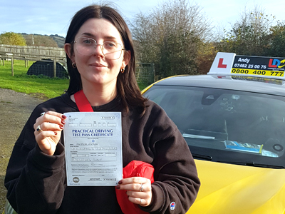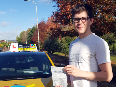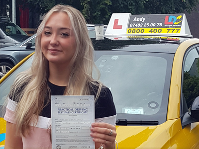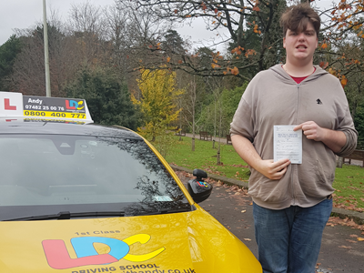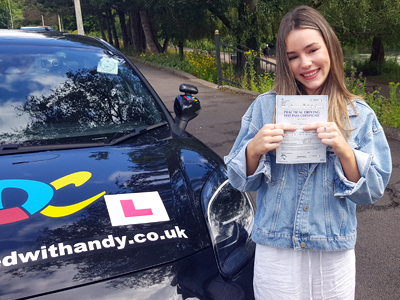 Chloe morecroft Passed 1st time From the first lesson full of nerves Andy was patient and comforting. During the course i had many days of lacking motivation but Andy always encouraged me. I had the ability to pass if i put my mind to it. Every lesson was full of laughs and i cannot recommend him enough .