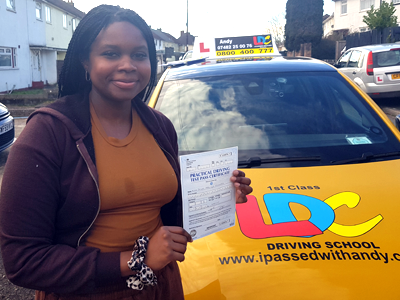 Ismaeel 1st time pass I have just passed my test with Andy. I was really pleased to pass 1st time and within 25hrs of lessons. I would definitely recommend Andy and LDC driving school to anyone who is looking for an instructor. Andy was patient, explained everything well and was always on time for lessons. Thx. again Miley
